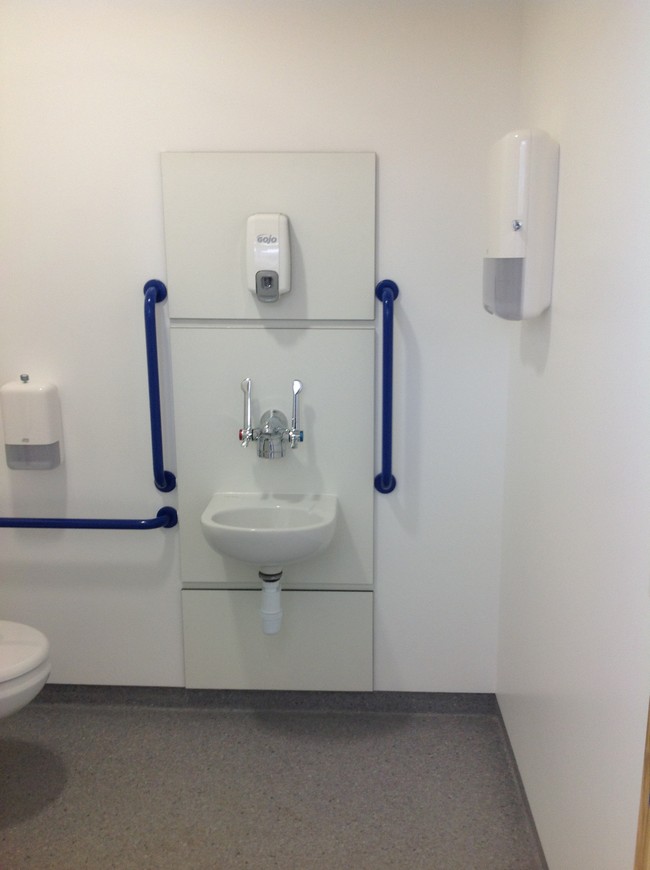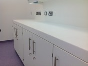 A detailed and robust project consisting of full joinery fit out package for HTM 71 cabinets, complete with liners, IPS Panels throughout, wall and base unit and full Solid surface reception counters.